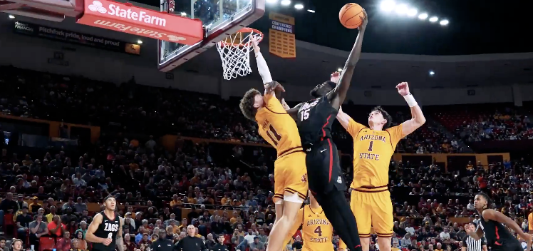 A still frame from Graham Ike’s dunk over the Arizona State frontline, courtesy Gonzaga Twitter.