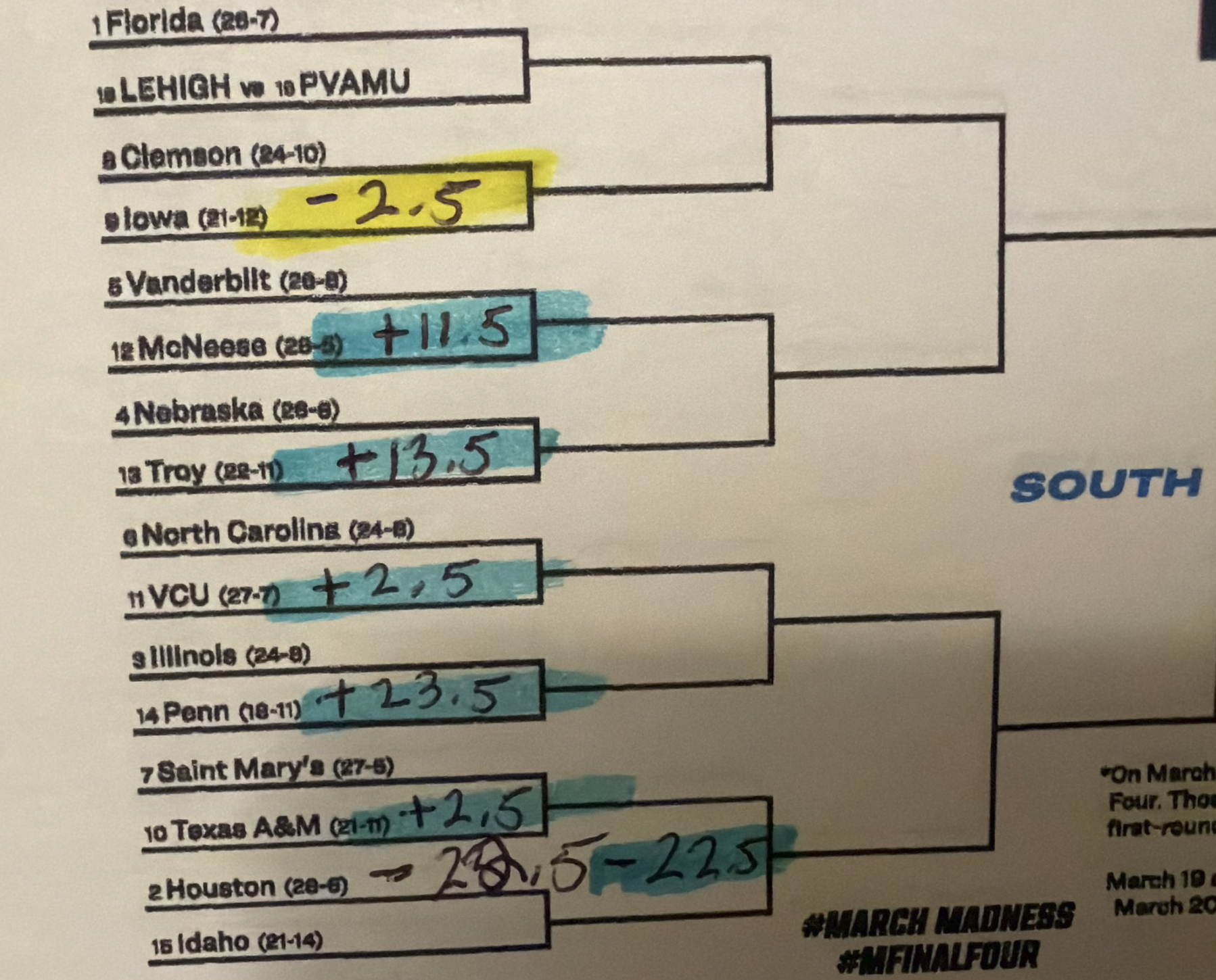 These selections reflect a philosophy centered on spread value rather than bracket advancement projections. By targeting numbers that offer leverage relative to public perception and seeding expectations, Matty D. approaches the South Region as a collection of individual betting markets rather than a single elimination puzzle.